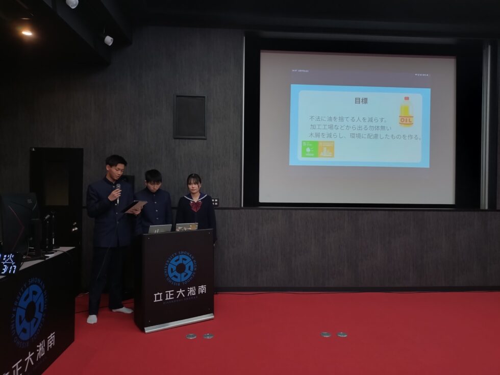 1年生は、森林や宍道湖について学んだ内容を発表し、水質調査や周辺地域との関係、現地調査での気づきなどをまとめました。